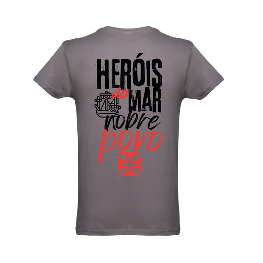 T-shirt regular ou oversize preto, branco ou cinza , Portugal , "heróis do mar", algodão, 190g