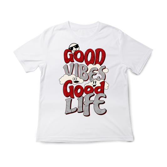 T-shirt regular ou oversize preta ou branca "good vibes, good life" 100% algodão