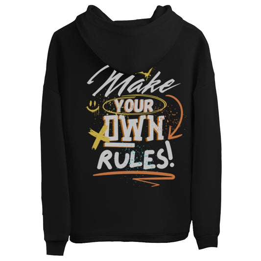 Sweatshirt preta "Make your own rules!", unissexo com capuz - 320 g/m2, 50% algodão, 50% poliéster
