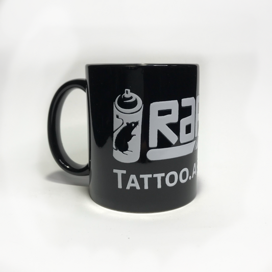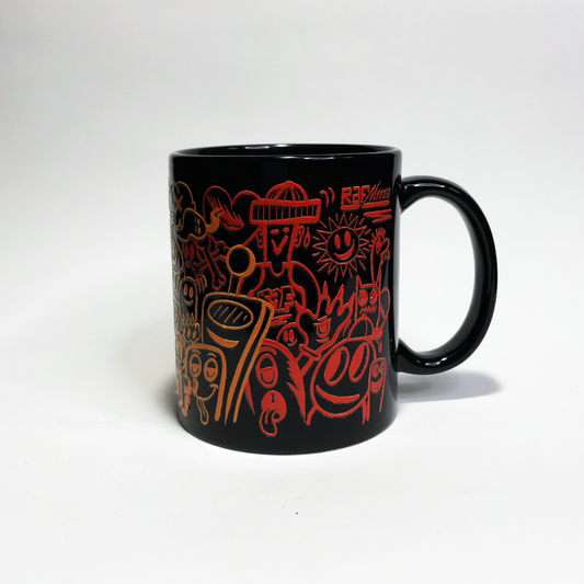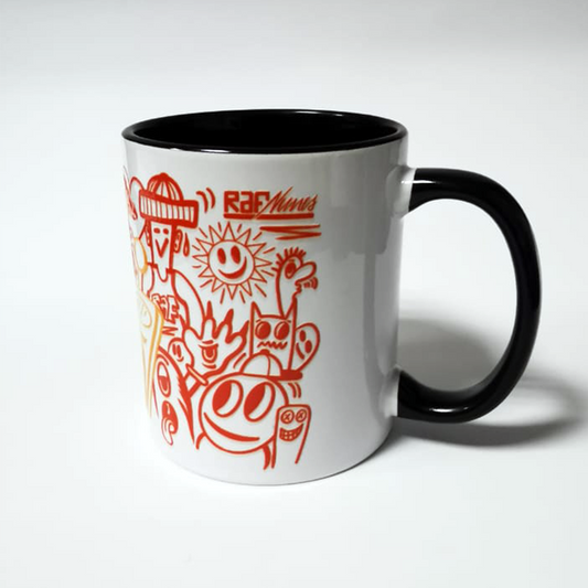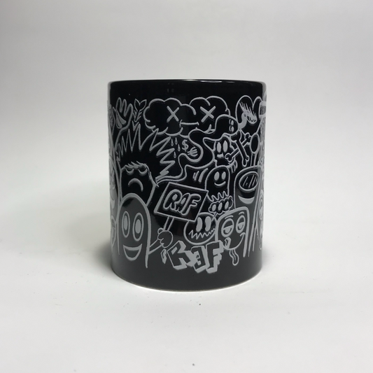 Caneca ceramica preta,com ilustração do artista RafNunes