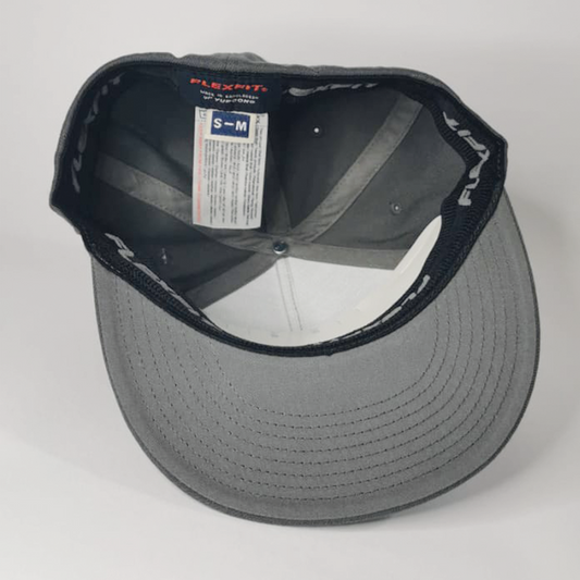 Snapback cap with no back adjustment, gray and gold embroidery, size S/L