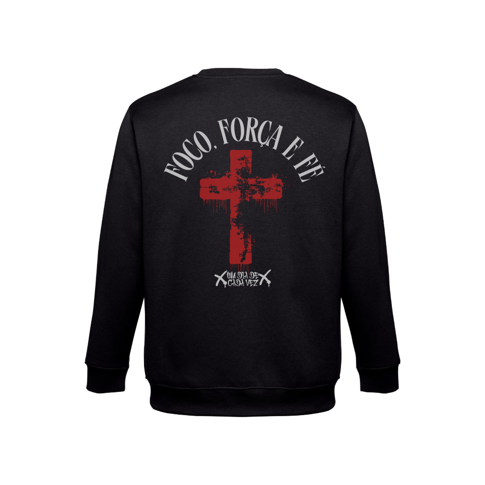 Camisola sem capuz preta 300 g/m2 “foco, força e fe"”