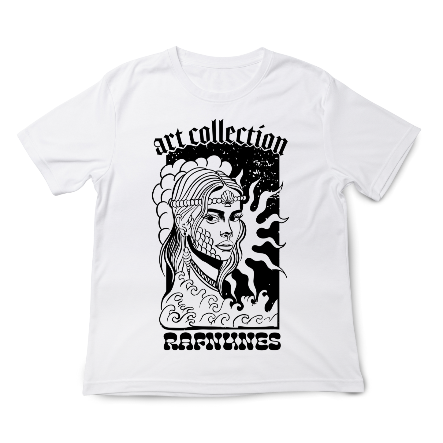 T-shirt regular preta ou branca, "deusa do mar", 100 % algodão, 190g