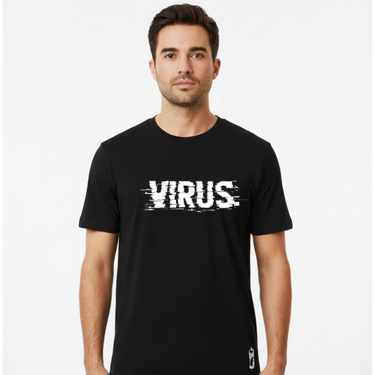 T-shirt regular ou oversize preta ou branca "Virus" 100% algodão